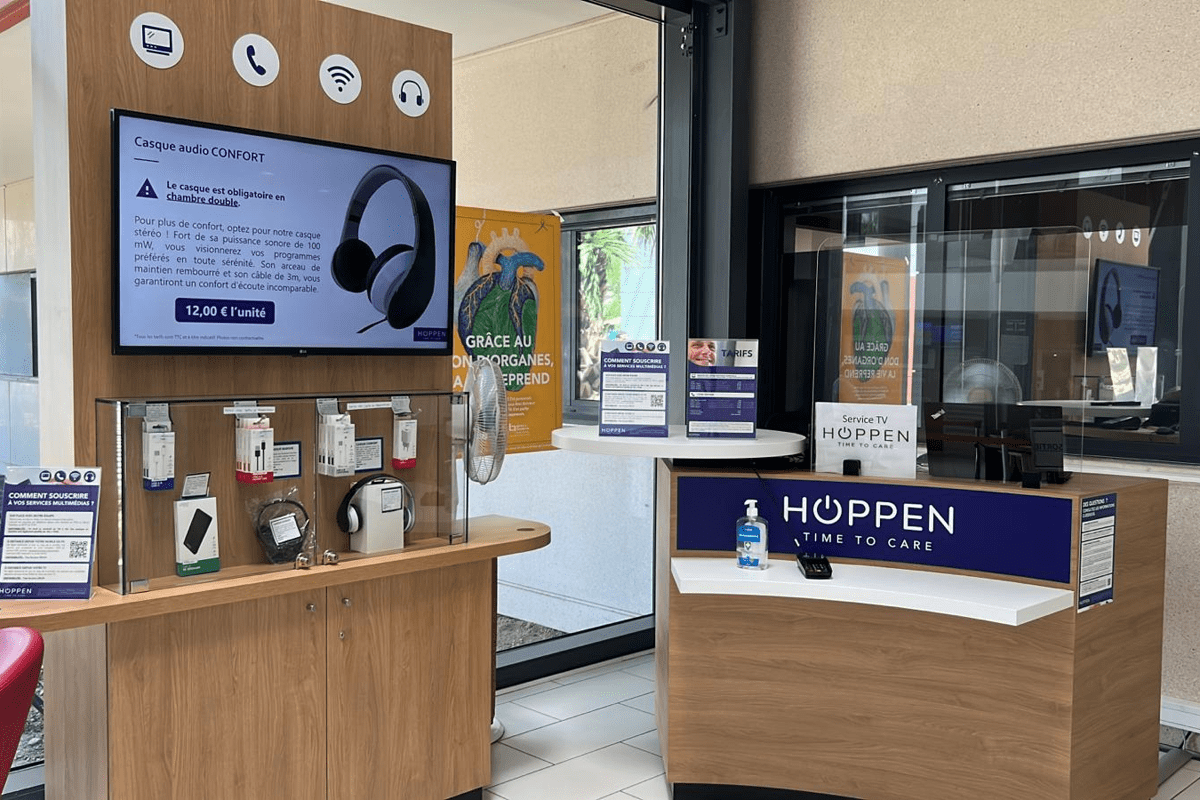 Seul ou en équipe, vous exercerez au sein d'un espace de vente dédié Hoppen. Souvent situé dans le hall d'accueil de l'hôpital, vous intégrerez le quotidien de son personnel et celui des patients. Pour des besoins de service client ou dans le cadre d'une maintenance, vous serez régulièrement amené à faire des déplacements en chambre.